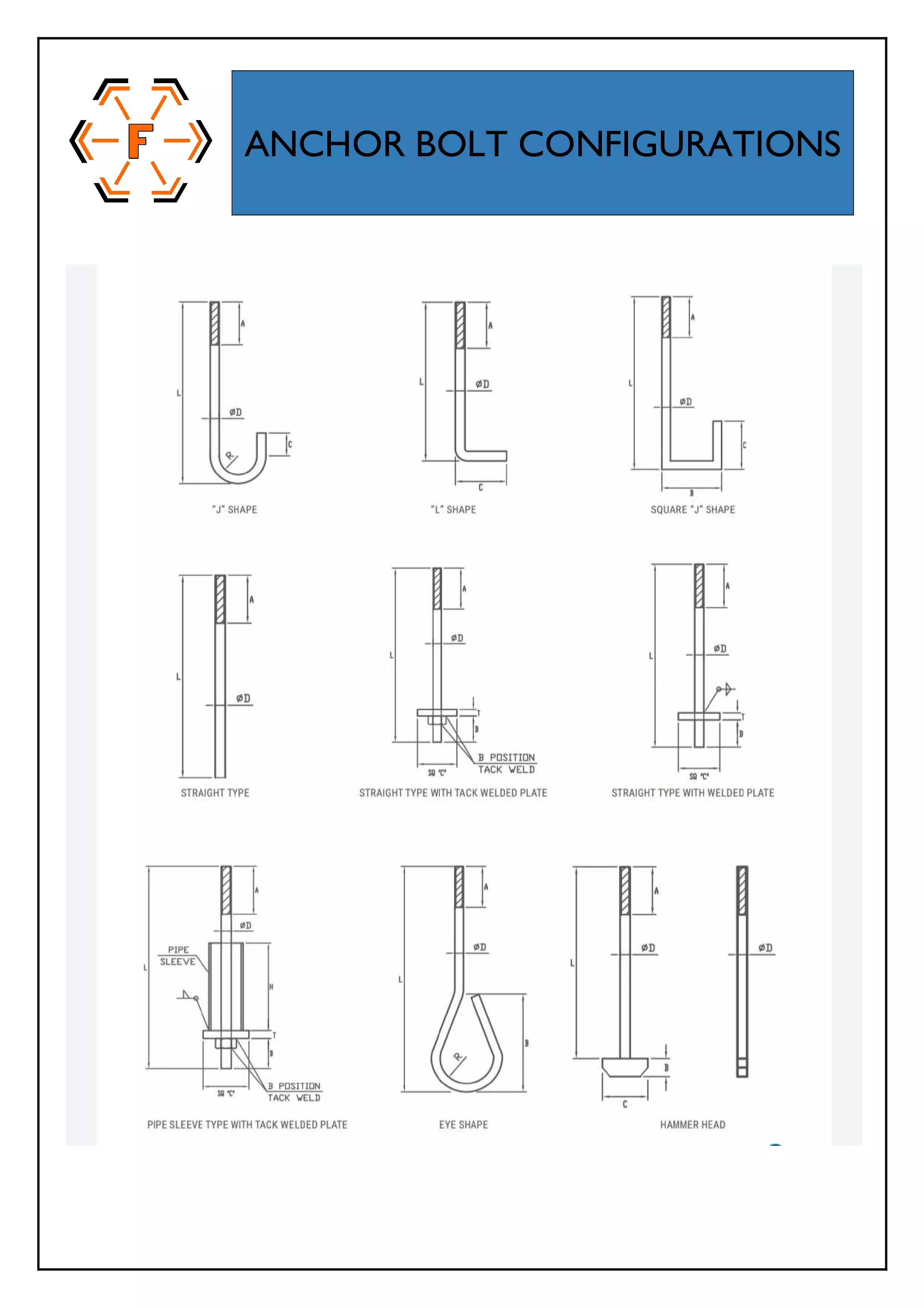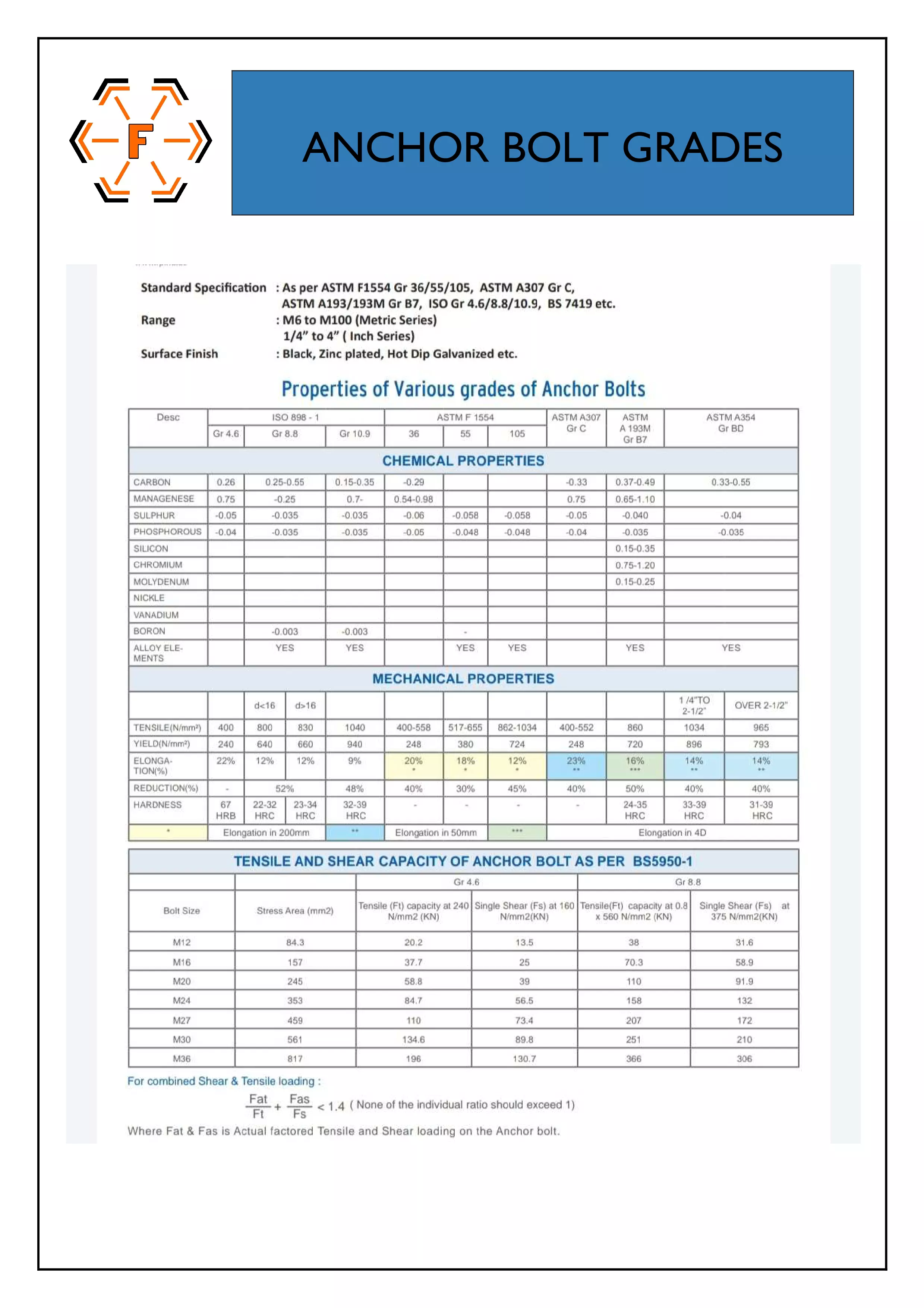 Anchor bolts are used to connect structural and non-structural elements to concrete. The connection can be made using a variety of components, including anchor bolts (also known as fasteners), steel plates, and stiffeners. Anchor bolts transfer various types of loads, namely tension forces and shear forces.